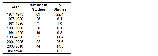 By means of descriptive data analysis possibilities of data evaluation including graphical presentation were shown. Suitability of the database to support the performance of meta-analyses was tentatively validated.