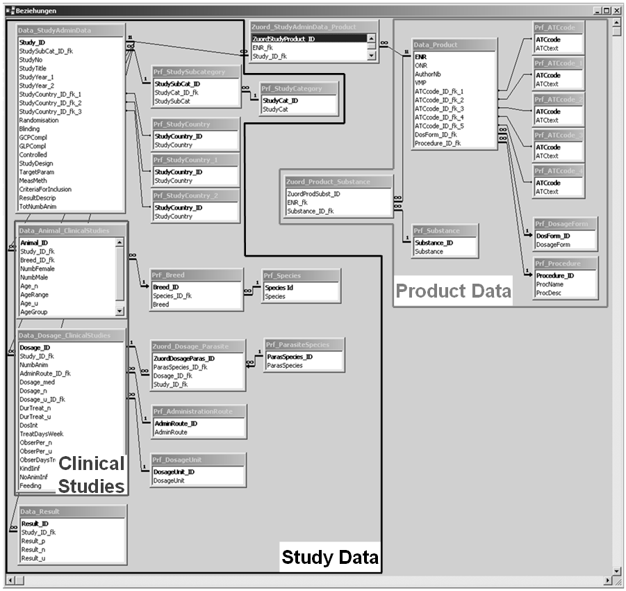 Conclusion: The database-supported collection of study data would provide users with easy access to the continuously increasing pool of scientific information held by competent authorities. It enables specific data analyses. Database design allows expanding the data model to all types of studies and classes of drugs registered in veterinary medicine. The needs for detailed data recording and versatility of the data model must be carefully balanced.